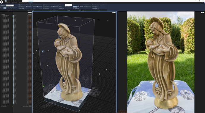 Foto 5 - Print Screen obrazovky počas spracovania fotografií softvérom pre vytvorenie 3D modelu sochy z roku 1905 a pre následné vytvorenie kópie sochy rôznymi digitálnymi technológiami výroby