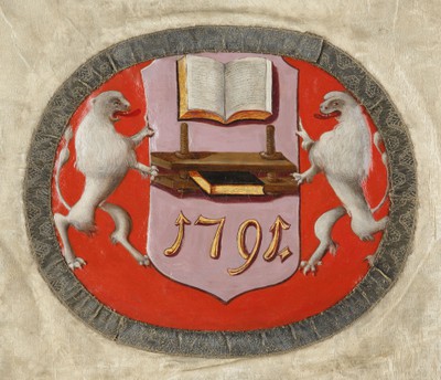 Obr. 1 Detail z korouhve Společenstva knihařů, r. 1791